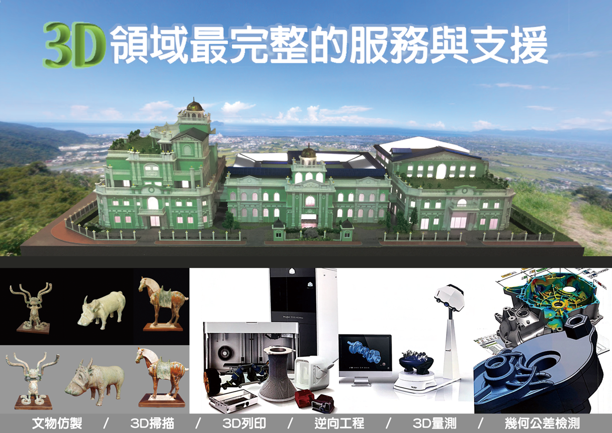 - 最前線的產業服務經驗,觸角廣及工業、文創、醫療、文化等相關領域,洞悉3D的應用潛力與發展趨勢。