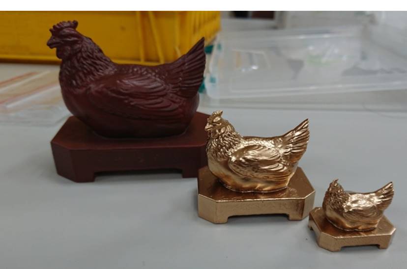 紫南宮金雞 每年春節,許多民眾會到南投紫南宮借「發財金」,或是求一隻金雞母回家供奉,祈求來年賺大錢。 2018年團隊走訪了一趟紫南宮,為金雞作了數位典藏-3D掃描 3D建模後,團隊利用3D列印製作不同大小及質感的金雞